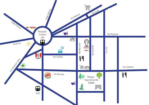 El Hotel Sara está situado junto a la céntrica Piazza Loreto, cerca de las tiendas de Corso Buenos Aires, a 5 minutos a pie de la estación de ferrocarril Milano Centrale. El hotel dispone de recepción 24 horas y habitaciones con aire acondicionado y baño privado. Todos los días se ofrece un desayuno buffet variado en el Sara Hotel. Durante el verano se sirve en el jardín interior, mientras que en invierno se sirve en la sala de desayunos. Este hotel de 2 estrellas es de gestión y propiedad familiar. El personal, amable y plurilingüe, está siempre dispuesto a proporcionar información útil para explorar Milán. La estación de metro Loreto se sitúa a menos de 5 minutos a pie y ofrece conexiones rápidas a través de Milán.