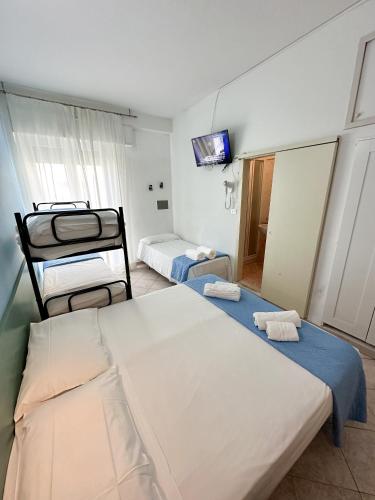 Offering a panoramic terrace and rooms with a balcony, the Sant'Angelo is 200 metres from Riccione's beach. Its à-la-carte restaurant serves local and southern specialities, and Italian classics. WiFi is free throughout. Fully air conditioned, rooms at Hotel Sant'Angelo come with a flat-screen TV, safe and en suite bathroom. Public areas include a TV lounge and playground. Cakes, fresh fruit and cereals, together with cold cuts, cheese and bread, are served every morning for breakfast. A snack bar is open daily until 24:00. Guests can enjoy a meal at the partner restaurant, just in front the Sant'Angelo Hotel. The hotel is 2 km from Riccione Train Station and a 4-minute drive from the Federico Fellini International Airport. The Aquafan and Oltremare Theme Parks are 5 km away. The property offers free entrance to the Beach Village theme park.