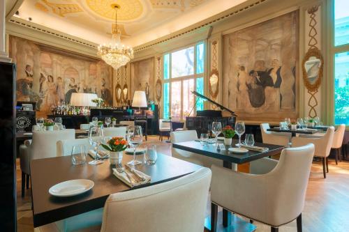 Este hotel de lujo se sitúa en la Via Veneto de Roma, frente a la embajada de Estados Unidos, y data de los años 20. El establecimiento ofrece WiFi gratuita en todas las instalaciones, habitaciones con muebles de diseño, un restaurante a la carta y un spa gratuito. La Villa Borghese se halla a 400 metros. Todas las habitaciones del Grand Hotel Palace incluyen aire acondicionado, TV LCD vía satélite y minibar. El baño de mármol cuenta con artículos de aseo VIP. El restaurante Cadorin sirve platos de excelente cocina italiana. Además, el establecimiento ofrece un abundante desayuno buffet americano con productos dulces y salados. El centro de bienestar dispone de sauna y bañera de hidromasaje. El alojamiento también alberga un centro de fitness y ofrece servicio de masajes. El edificio, diseñado por Marcello Piacentini, fue restaurado de forma elegante por Italo Rota. Este alojamiento alberga el gran salón Cadorin y un salón de negocios ultramoderno con bar. El hotel se encuentra a 5 minutos a pie de la Piazza Barberini y de la estación de metro de Barberini, en la línea A. La Plaza de España queda a 10 minutos a pie.